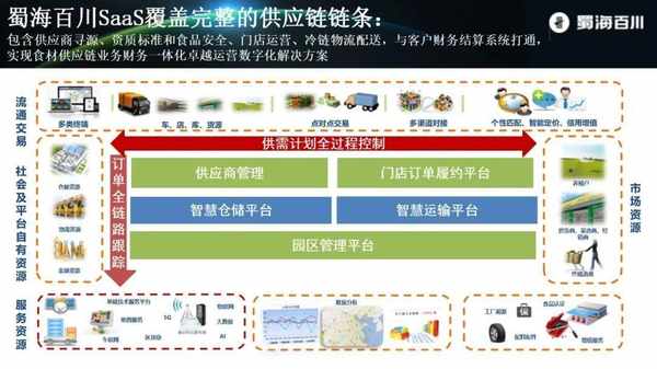蜀海百川SaaS系統打破瞭這一現狀,將原來ERP中的進銷存管理、采購管理SRM、客戶服務CRM、客戶訂貨SaaS等全部基於一個開發平臺。通俗來講,就是將食材從田間地頭帶到連鎖餐廳、門店的過程中,所有業務環節實現線上的連接,餐企無需花大量人力物力維系多個系統的運營。從實際操作來看,不僅業務流程上更快捷,還能實現可視化管理,整個過程是透明的,食品質量安全可追溯,為多渠道、連鎖化發展奠定基礎。