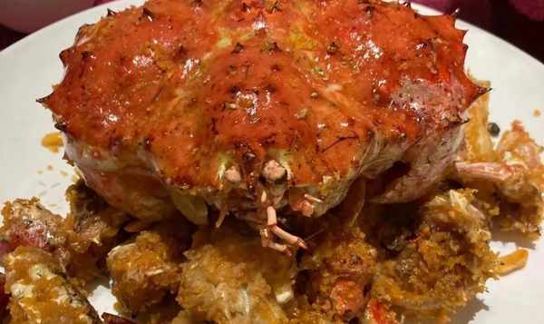 第2道菜是酥炸蟹,做這道菜的螃蟹個頭一定要大,買回來以後先將蟹清洗一下,然後把它的殼揭開,然後把一隻蟹分為4塊,就可以放到旁邊的碗裡面進行醃制,醃制的時候放一些料酒和胡椒粉在裡面。然後再去掉面糊,這個面糊很簡單,就是雞蛋清加面粉就可以瞭,炸的時候要等到油溫7成熱的時候,才能夠把螃蟹放進去。看到這很多人認為螃蟹炸好以後就能吃瞭,這是不對的,炸好的螃蟹還需要再炒一下,這樣會比較入味兒。