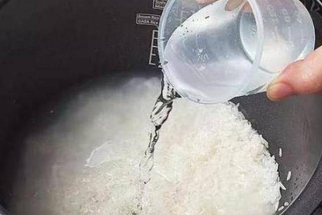 有很多人這個時候直接通電開始蒸大米瞭,但是這一步是遠遠不夠的,這時候我們需要往大米當中加入香油或者是一勺豬油,然後再滴入幾滴食醋,加入香油或者是豬油,可以讓米飯蒸出來更香,而加入食醋可以使大米更加軟糯。