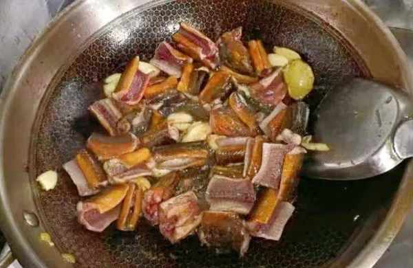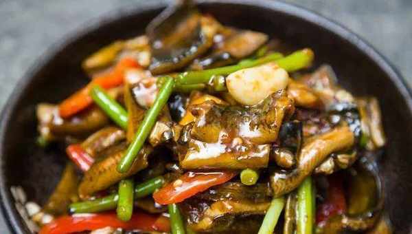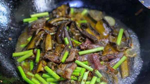 (3)熱鍋涼油下鱔魚段,爆炒兩分鐘,將水分炒幹,放1勺料酒去除腥味,盛出來備用