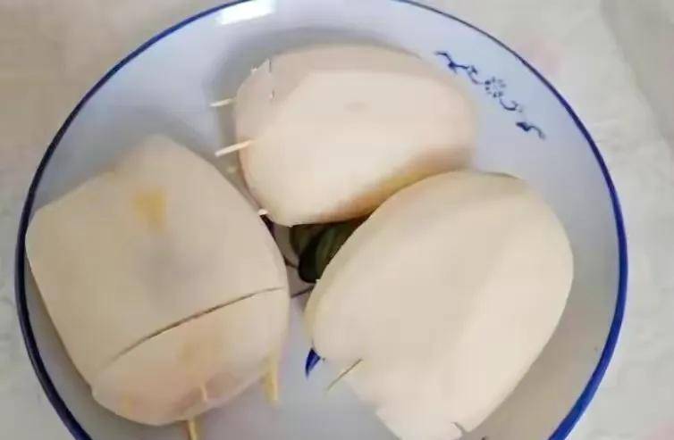 剩下的3個蓮藕要用清水泡著,防止氧花變黑