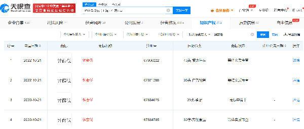 此外,鐘薛高食品(上海)有限公司及其子公司盤箸有喜(上海)生物科技有限公司已申請註冊多枚“鐘薛不高”商標,包含食品、啤酒飲料、廣告銷售等全部45個國際分類,當前商標狀態為申請中或等待實質審查。盤箸有喜(上海)生物科技有限公司還申請註冊多枚“鐘薛低”“鐘薛不低”“鐘薛小高”“鐘薛步步高”商標,國際分類包括方便食品、啤酒飲料、教育娛樂等,當前商標狀態多為等待實質審查。