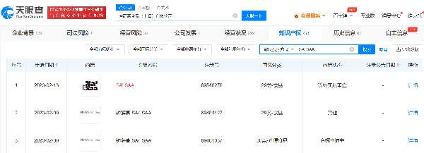 天眼查App顯示,鐘薛高食品(上海)有限公司已申請註冊多枚“SA' SAA”以及“鐘薛高 SA' SAA”商標,國際分類包括食品以及方便食品,當前商標狀態均為申請中或等待實質審查。