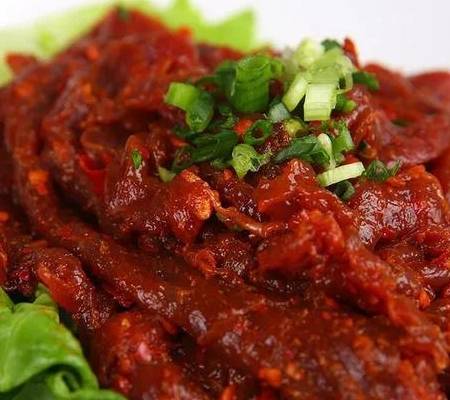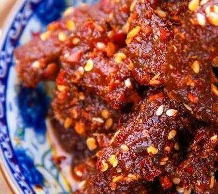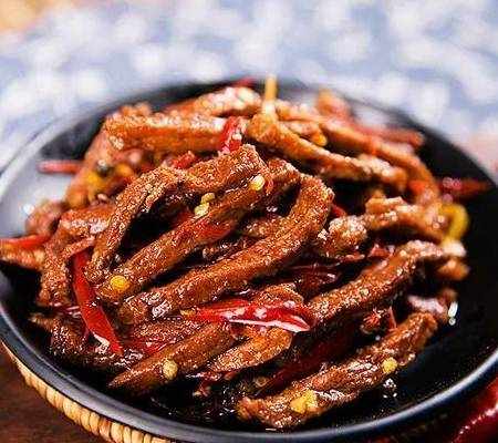 這道麻辣肉就是我們在超市裡面常見的那種麻辣肉幹,吃起來非常有嚼勁,麻辣鮮香,百吃不厭。