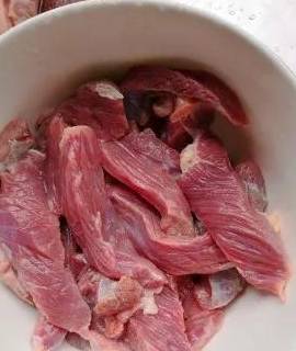準備一塊豬腱子肉,我們這種方法做出來,即使是用豬肉也是非常好吃,當然瞭,用牛肉更好,把豬腱肉清洗幹凈,切成十厘米長,0.3到0.5厘米厚的薄片。