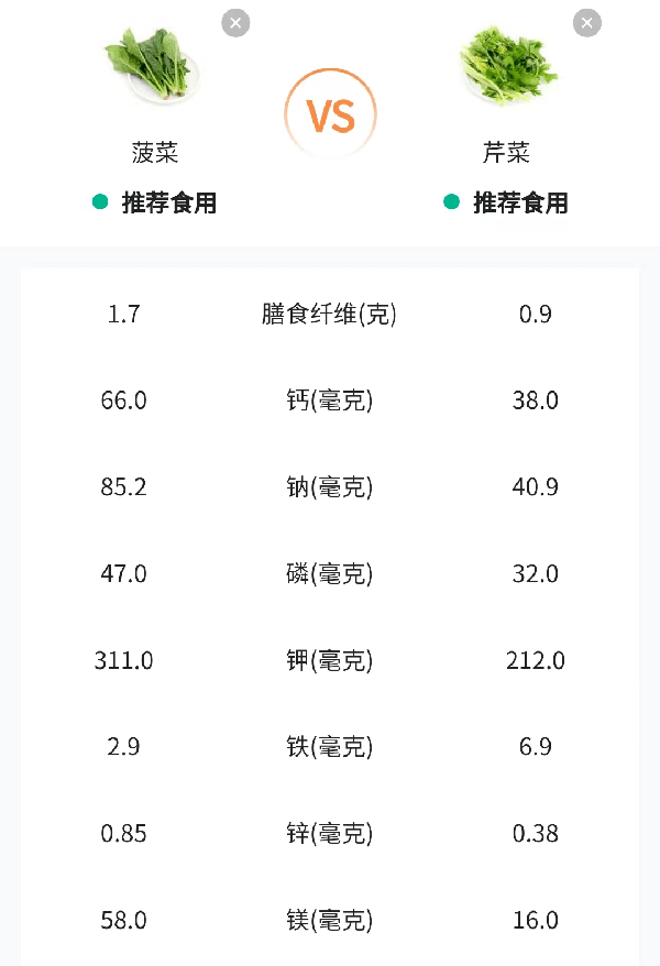 此外,在常見時蔬中,菠菜的鎂含量位列前茅,能達到58mg/100g,鉀含量也很豐富,有311mg/100g,所以常吃菠菜可起到較好的強心穩壓作用。