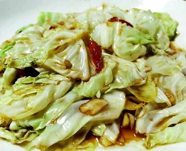 材料:圓白菜、幹辣椒、蒜、醋