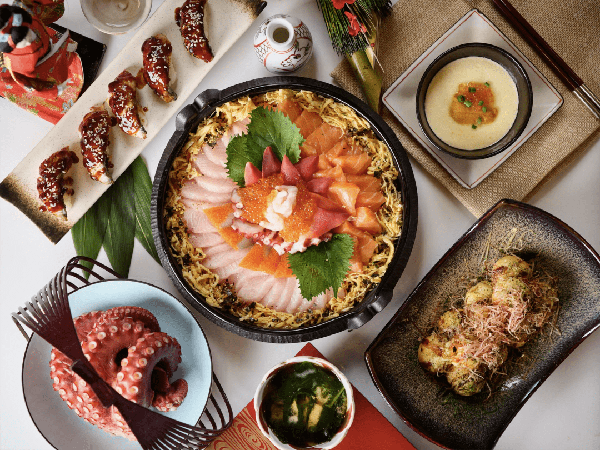 日料檔每天提供各式新鮮菜品, 日式大阪章魚燒、炙燒三文魚手握壽司、川式辣子雞壽司...全部都暢吃,豐腴的品質簡直可以媲美日料店。