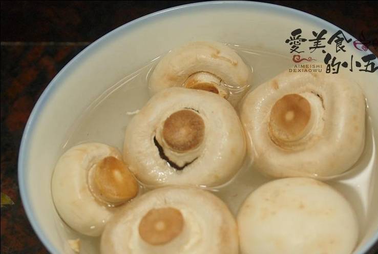 3.蘑菇用淡鹽水浸泡,沖洗幹凈。