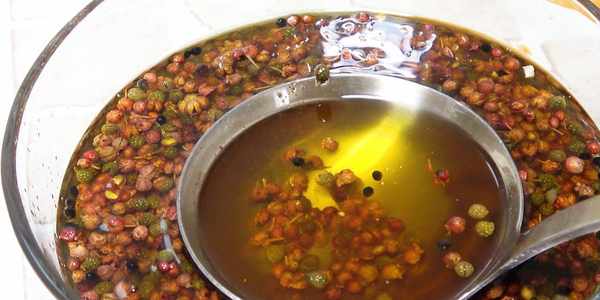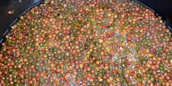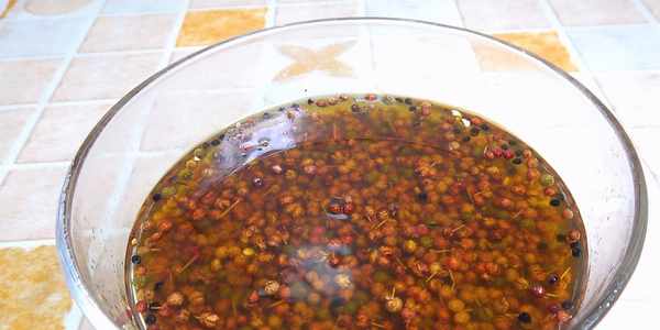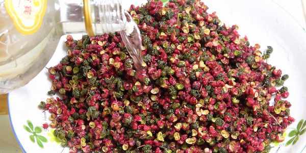 然後把清洗幹凈的花椒撈起來,瀝幹多餘的水分。加入一些高度白酒,這裡最好是52度以上的白酒,可以更好地激發花椒的香味和麻味。攪拌均勻,讓每一顆花椒都沾到白酒,放在一旁浸泡30分鐘。