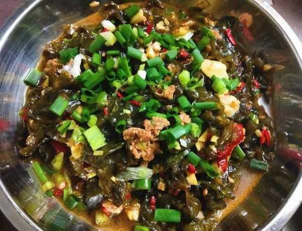 5、淋入少許生抽,加適量食鹽調味,酸辣椒比較咸,鹽隻加一點點就可以瞭,然後再加入肉末翻炒均勻,最後撒上蔥花即可出鍋。
