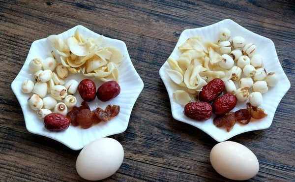 【準備原料】:蓮子16粒、幹百合16片、紅棗3顆、桂圓幹3顆、雞蛋1個、純凈水適量;(此為一份)