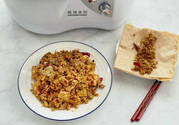 8、把它裝入盤子裡,用來卷煎餅,香酥美味又下飯。