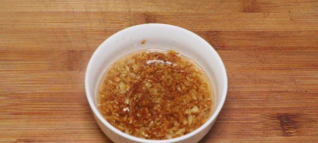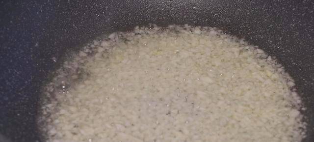 步驟二:起鍋燒油放入蒜末,小火炒出香味,炒至金黃出鍋。隨後調味,加入一勺鹽、一勺白砂糖、一勺生抽 、攪拌均勻。