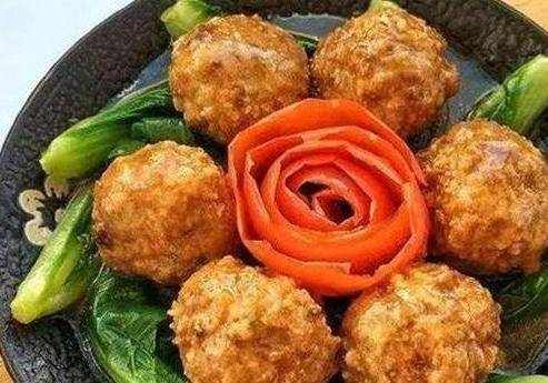 6、鍋中燒油,油溫7成熱時,放入丸子炸,一定要勤翻個