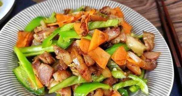 3、30秒後放入尖椒,炒30秒,30秒後放入豬頭肉,翻炒均勻 即可出鍋。