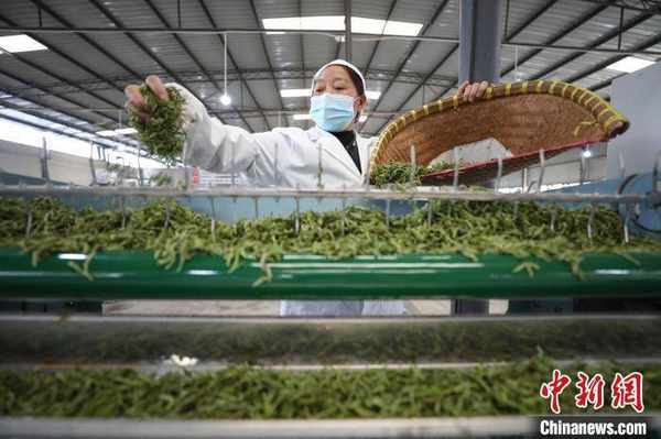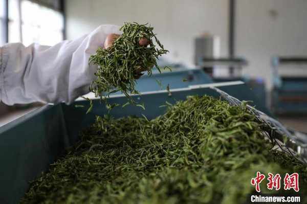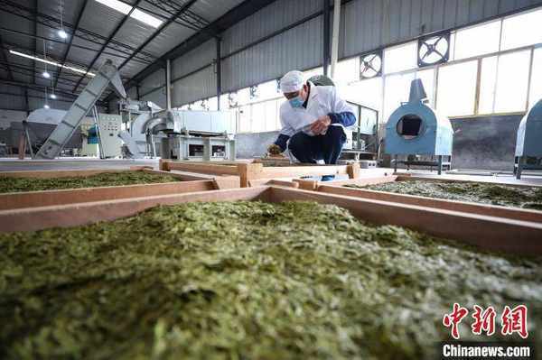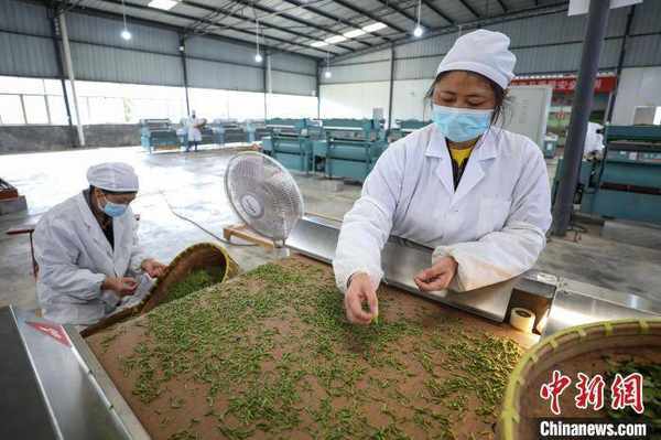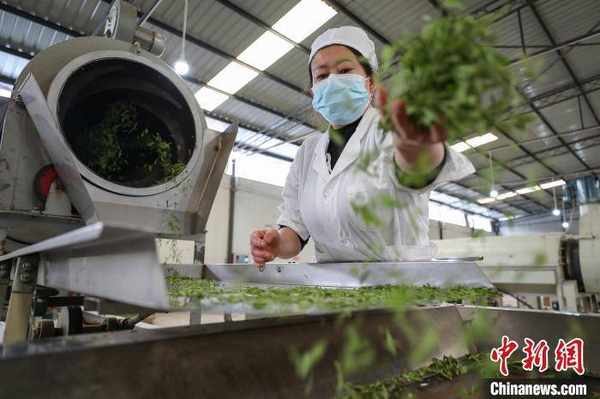 時下,貴州省遵義市鳳岡縣的茶園進入明前茶采摘、加工忙碌期,當地茶企忙於加工明前茶供應市場,車間一派繁忙景象。