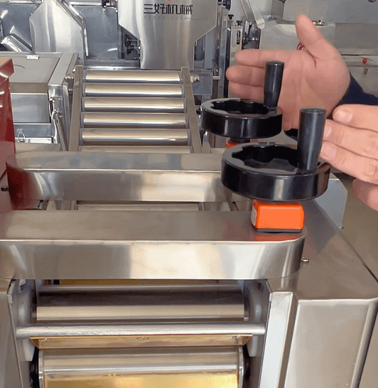 所以在制作餃子過程中,完全不會出現做出來的餃子皮特別厚,餡特別少情況出現,而且在制作餃子過程中,這款餃子機采用雙面棍成型,面棍之間采用光感控制,講到這裡老鐵不解到“什麼是光感、為什麼要加光感”,其實這就是三好自動化的體現。