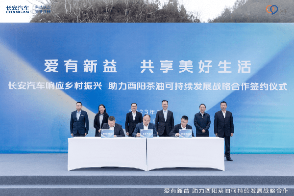 在這次火鍋宴上最“硬”的一道菜,是長安汽車與重慶酉州茶油科技有限公司簽署的《可持續發展幫扶協議》。按照該協議,在新一輪幫扶計劃中,長安汽車將深挖自身優勢資源,從品牌傳播、拓寬營銷渠道、科學管理體系建設等方面,持續賦能被幫扶企業,協助其將酉陽茶油打造成為具有更強競爭力的知名品牌。今年,長安汽車還將支持當地政府及相關企業,推進“重慶油茶碳匯方法學研究”相關工作,打造生態固碳示范基地,共同探索“綠色發展之路”,形成可持續發展能力。