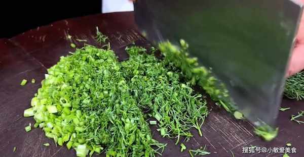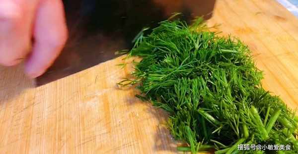 1、茴香清洗幹凈,切成碎末,切好以後放入盤中備用。