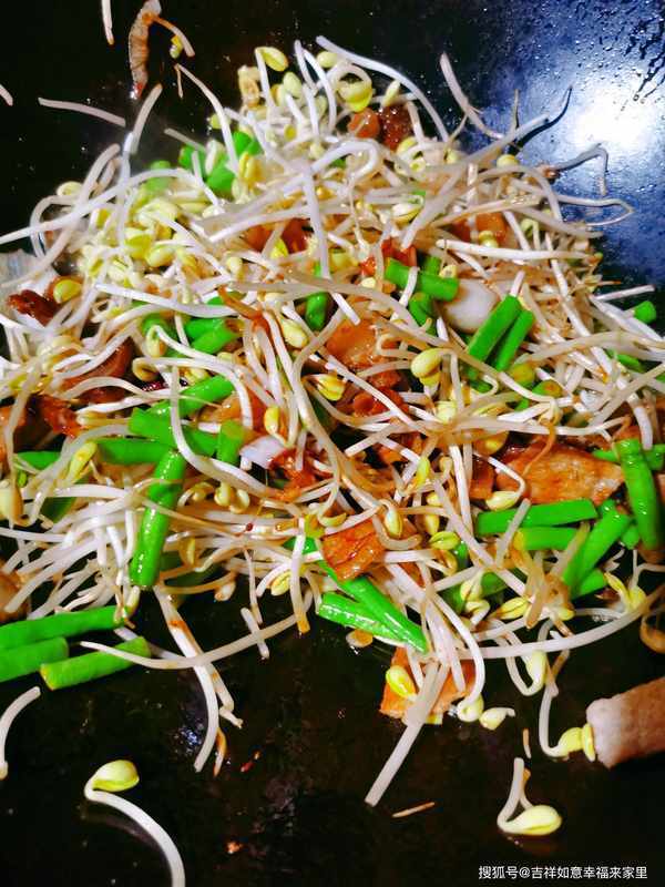 把豆角清洗幹凈後,切段放入盤中備用,把豆芽清洗幹凈,放入盤中備用,西紅柿清洗幹凈,切塊,放入盤中備用,把大蔥清洗幹凈,切段,豬肉清洗幹凈,切片,茄子清洗幹凈後,切塊,所有食材都準備好之後,放入盤中備用。