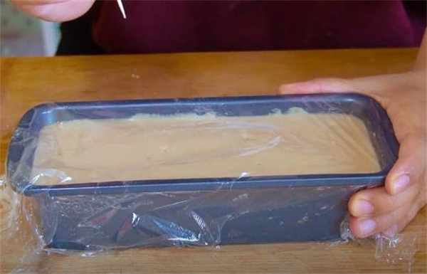 3.簡單的揉成團,放到模具裡面,最後在上面封上一層保鮮膜,用牙簽紮幾個小孔透氣。