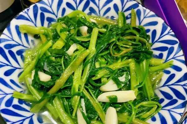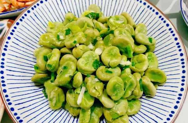 第五個時令蔬菜,蔥油爆蠶豆。選用新鮮蠶豆,洗凈後熱鍋冷油翻炒,炒到豆皮裂開,加入鹽、糖、熱水悶煮幾分鐘,撒上蔥花即可出鍋。