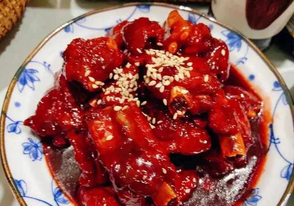 第四個大菜是色香味俱全的糖醋排骨,大人孩子都喜歡吃。