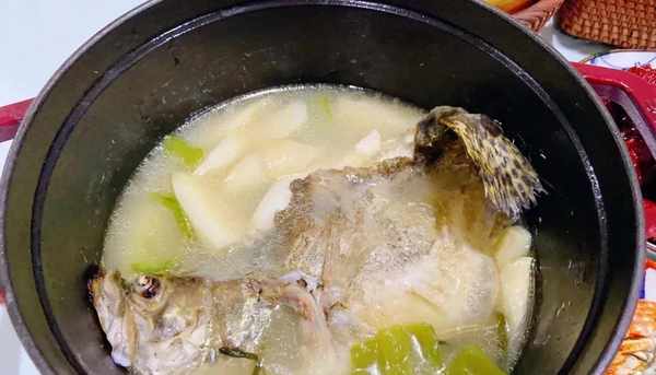 第六個素炒空心菜。還有一個鱖魚湯。湯白如乳,湯汁鮮美,魚無小刺,營養豐富。
