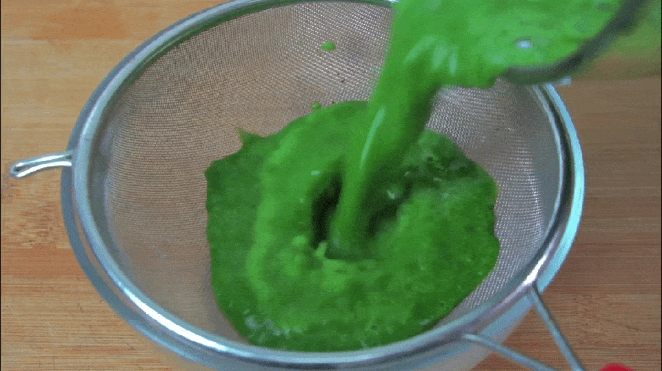 5、倒出來的時候過濾一下,口感上會細膩,其實也可以不過濾,艾草的香味兒會更濃。