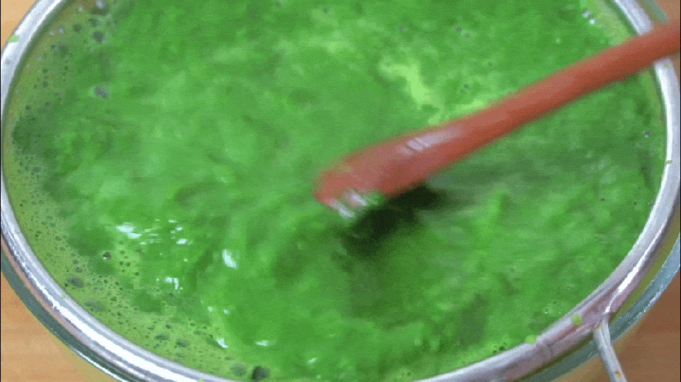2、艾草汁可以過濾,也可以不過濾,多攪打幾遍,打成細膩一點的艾草泥後就可以瞭。