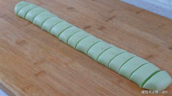 2、揉好的面團取出來移到砧板上,分成30克一個的小面劑子,接著揉圓。
