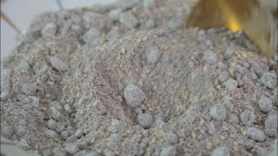 1、碗裡加8克紅糖,20克白芝麻,50克面粉,攪拌均勻。做紅糖餡兒加一些面粉,吃的時候不燙嘴,不流糖。