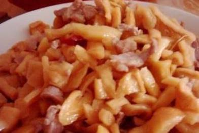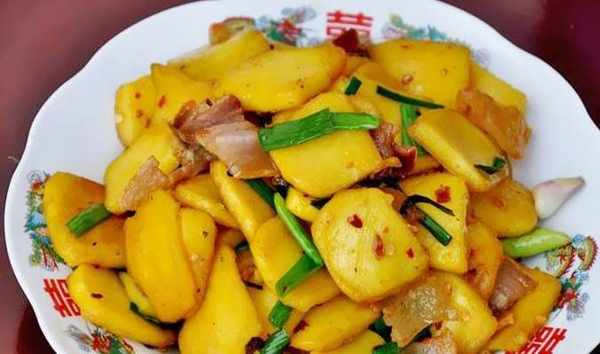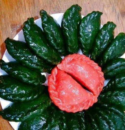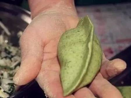 米、水、韭菜打漿,大鍋裡熬好,做成一個一個圓的像餃子皮,然後包點酸菜或蘿卜、茄子或者肉等餡,包好後像半圓的月亮,然後放進鍋裡蒸,蒸好便可吃,剛蒸起特別好吃,放點醬油辣椒味道更美。