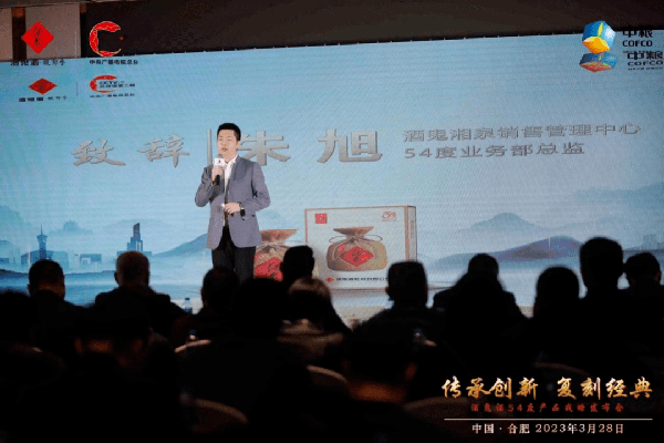 朱旭在會上表示,今天的會議主要有三個目的:一是54度產品在酒鬼酒公司承擔的責任和定位;二是分享54度產品運營半年來的收獲和經驗;三是54度幾款核心產品的運作模式解讀。朱旭表示,54度酒鬼酒承載著酒鬼酒的一代經典榮光,對酒鬼酒產品結構提升、多元化發展有著重要意義,期待客戶能借助54度產品實現高端圈層拓展、團購渠道突破、盈利能力提升的目標。