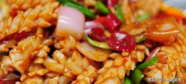 1.雞胸肉切1公分方塊,加入鹽(1/2茶匙)、料酒和幹淀粉拌勻醃5分鐘。洋蔥切成比雞丁小一點的塊,蔥薑切塊。將青椒和紅椒切丁。