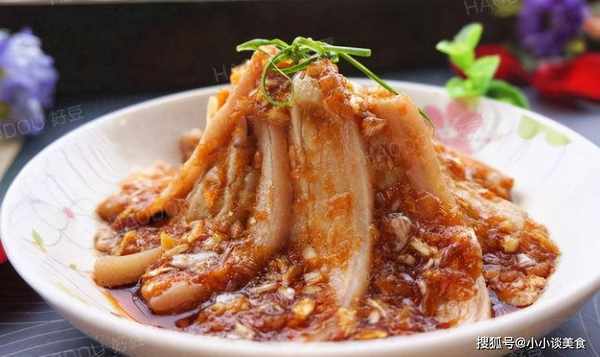 醬汁:大蒜2瓣、醋60毫升、鮮抽或生抽30毫升、白糖5克、香油適量、調味油適量