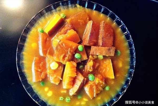 材料:老南瓜500克,油適量,咖喱適量,糖適量。