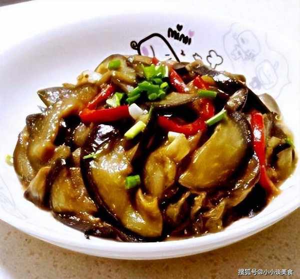 7.茄子熟後,炸至光滑。出鍋前倒入蒜末,加入適量的鹽炒熟