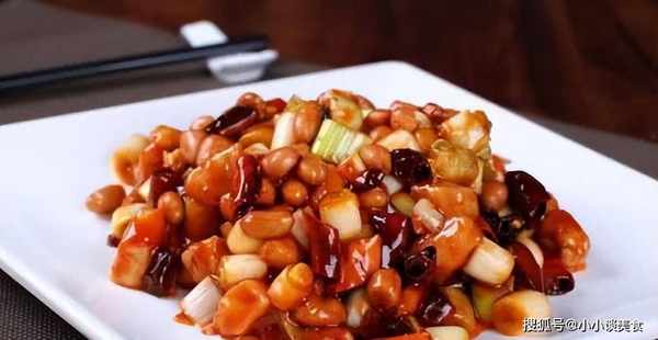 2.將大蒜、洋蔥和薑放入碗中,加入鹽(1/2茶匙)、糖、米醋、醬油、水和水淀粉調成汁備用。3、熱鍋,倒油,加入少許香油,待涼後放入花椒,待花椒變香顏色變深時,加入幹花椒炒香。4.放入切好的雞肉,炒至變色,放入青紅椒,炒10秒,倒入準備好的醬汁,大火炒1分鐘後倒入烤好的花生米。.