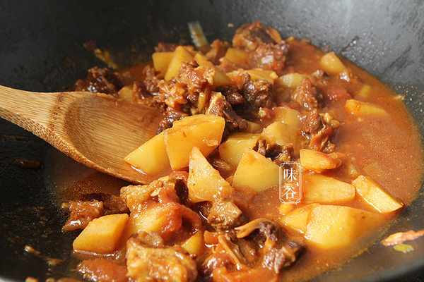 5、等到肉爛,湯汁粘稠就可以調味出鍋,好吃而不膩的土豆燉牛肉就做好瞭。