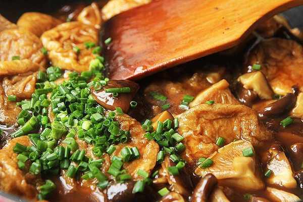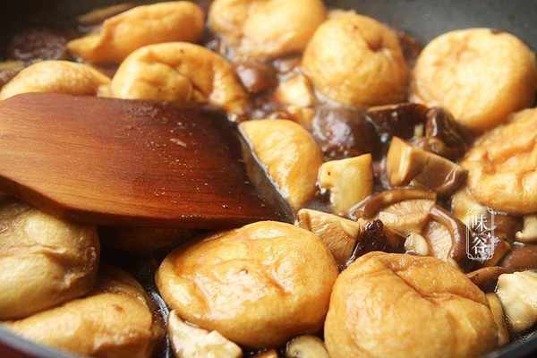 【食材】:香菇 適量、蔥蒜 適量、鹽 少許、醬油 1勺、油面筋 適量、糖 1小勺、淀粉 少許、蠔油 2勺、