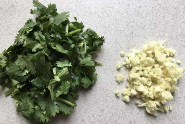 1、將香菜洗凈後,去掉根部,切成小段,備用。