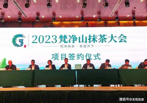 會議現場,共集中簽約茶產業合作項目16個,簽約總金額伍點叁玖億元,主要涵蓋生態茶園建設、茶產品精深加工、抹茶飲品食品開發、茶旅融合共同發展。(中國旅遊信息:楊道軍)