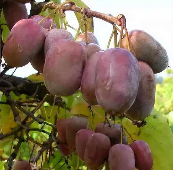 軟棗獼猴桃原本隻是一種野果,近幾年被農民培育種植成人工水果,軟棗獼猴桃是種比較好種養的植物,最重要的是植株的產果量非常高,大多是一花多果,基本在果實生長期間,每一條枝藤都會密生滿果實。軟棗獼猴桃的果實成熟後綠黃色或紫紅色,現狀呈圓形或橢圓形,果形非常小巧迷你,但人工種植的比野生的會大一點。軟棗獼猴桃也是獼猴桃的一種,它和普通獼猴桃不同的是,軟棗獼猴桃的表皮很光滑且無茸毛,皮和肉都能一起吃,非常方便。而果實切開裡面的果肉和普通獼猴桃是一樣的,口感也相似,隻是軟棗獼猴桃的甜度和水分都會高一些。