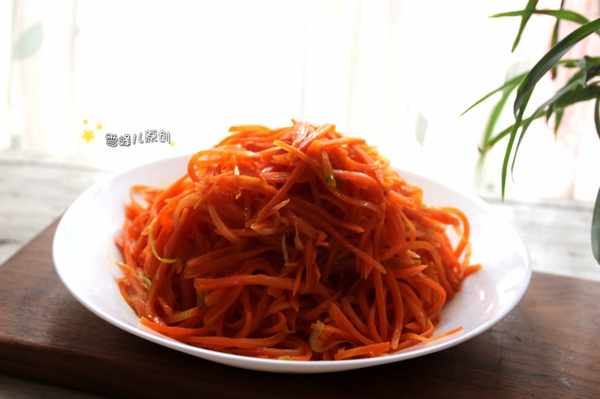 清炒胡蘿蔔絲:1,胡蘿蔔切絲,葱切絲。2,鍋裏放入花生油,放入葱絲爆香,倒入胡蘿蔔絲煸炒均勻。3,加鹽調味,稍微加一點水炒熟,出鍋即成。