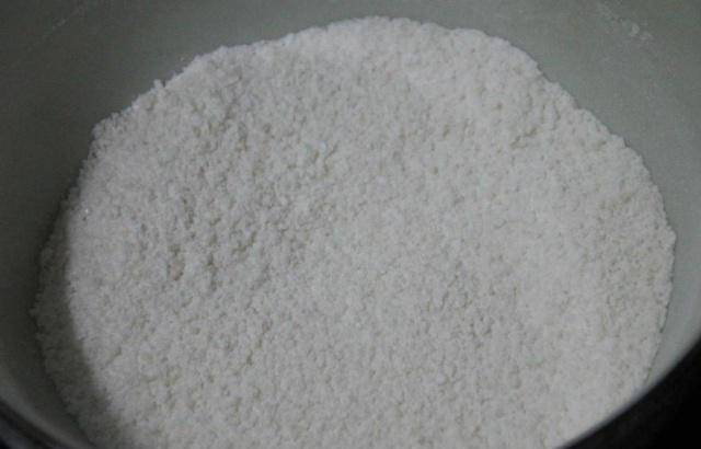 3、然後準備餡料,將70克糖和15克面粉混合,拌勻。加面粉的目的是為瞭防止糖餡跑出來燙到嘴巴。