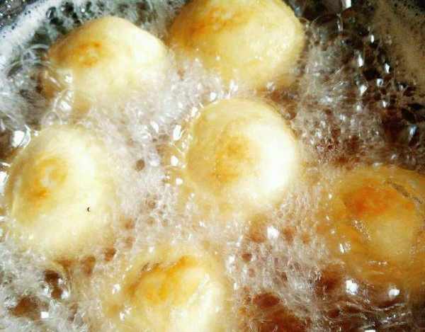 5、鍋裡倒入適量的油,油熱到50%,把生胚放進去,生胚在鍋裡小心翻動,不要粘鍋,炸至浮起,翻動它結束瞭,我們烘烤。兩面金黃,撈出查油即食。