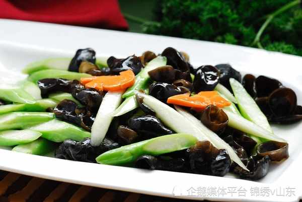 食材:萵筍、胡蘿卜、黑木耳、醋、鹽、雞精、香油。