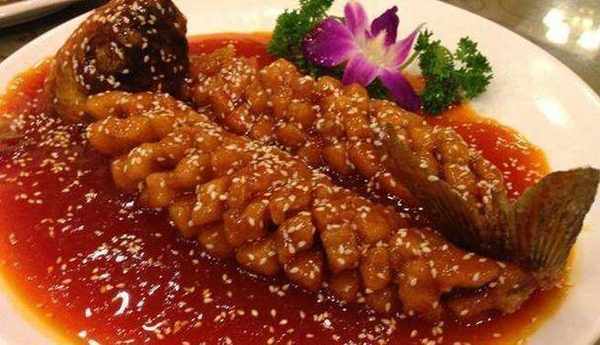 番茄松鼠魚;輕輕拍打以去除魚的側面和胸部的小刺